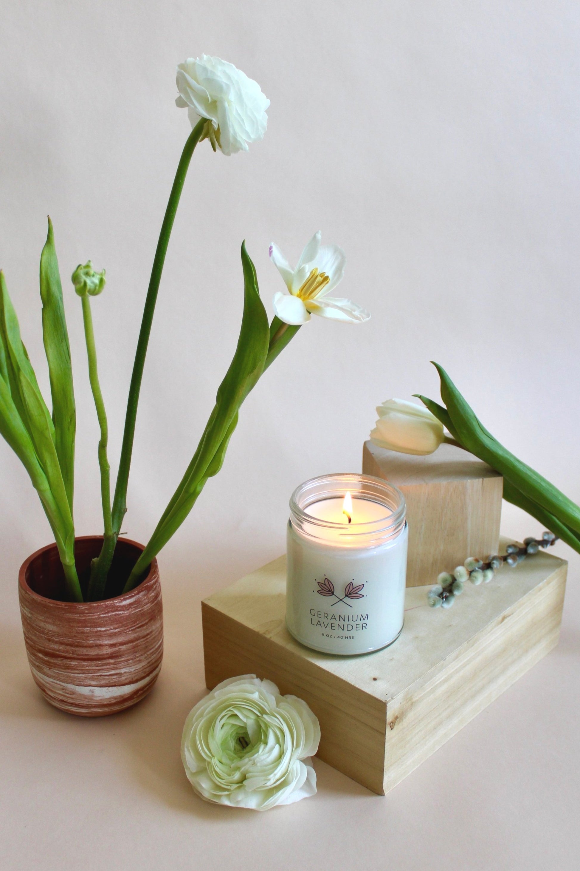 Geranium Lavender is a floral fragrance to open the heart and put you at ease to help you fully bloom this season and beyond.